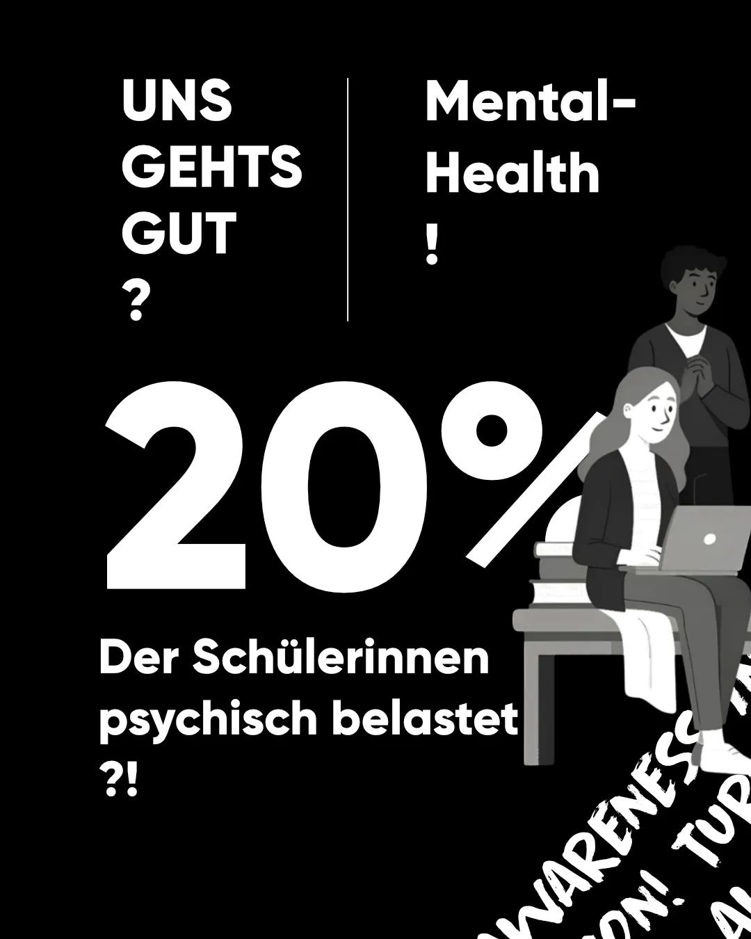 Uns gehts gut? ist unsere Mental-Health-Kampagne der Bundesschülerkonferenz (BSK), die im Mai 2025 startete. Seitdem arbeiten wir intensiv daran, bei politischen Entscheidungsträger*innen und relevanten Akteur*innen aus der Zivilgesellschaft das Thema der mentalen Gesundheit auf die politische Agenda zu bringen. Wir stärken das gesellschaftliche Bewusstsein und tragen zur Entstigmatisierung psychischer Belastungen bei. Auf Basis von Forschung und der Beschlusslage der BSK bündelt sie Forderungen und übersetzt sie in klare politische Erwartungen. Ziel ist, mentale Gesundheit zur bildungspolitischen Priorität zu machen und Schulen zu Orten zu entwickeln, die schützen, stärken und niemanden zurücklassen.
